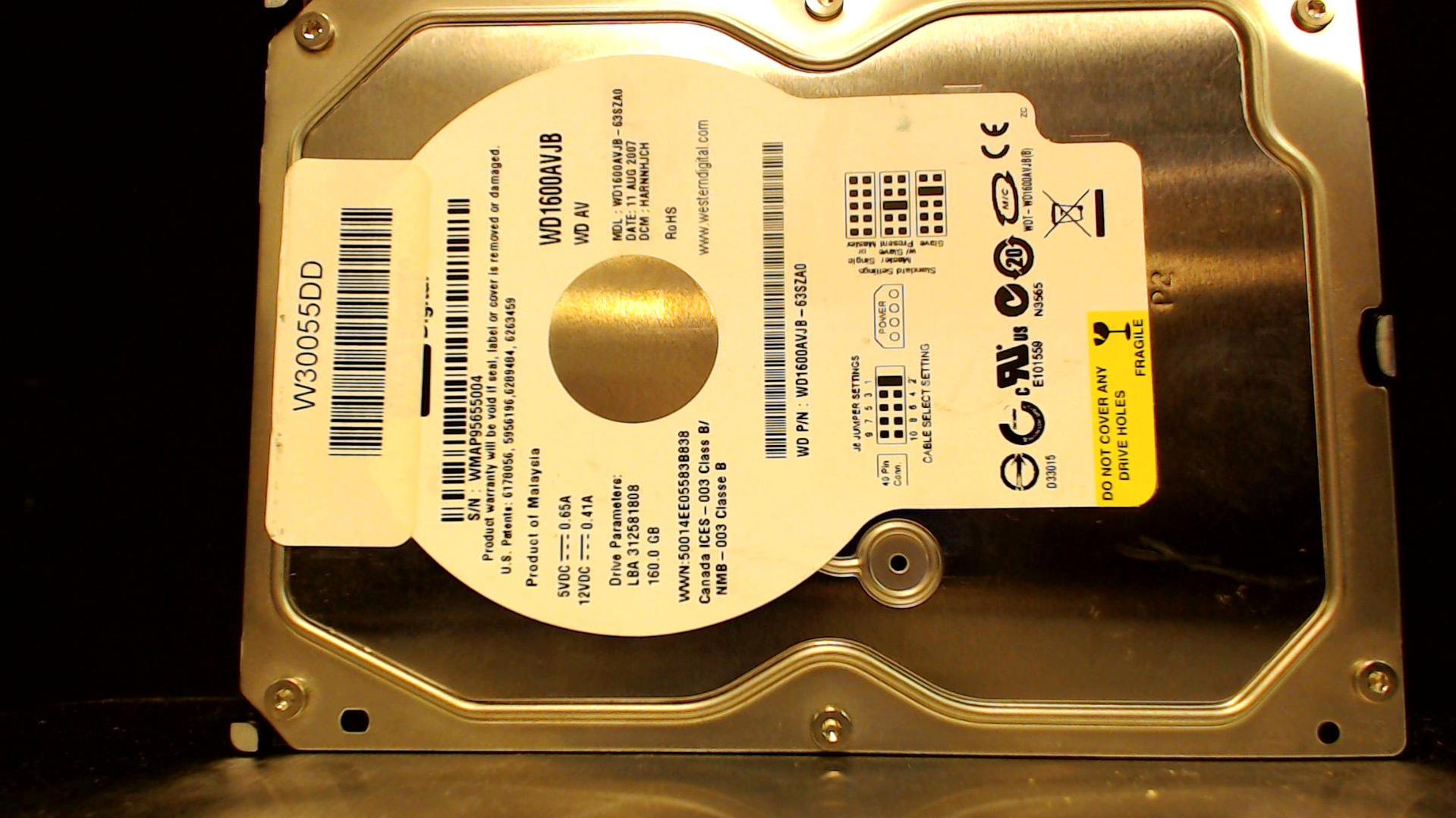 WD1600AVJB-63SZA0 - 11-Aug-2007 - WD-WMAP95655004 - photo-1