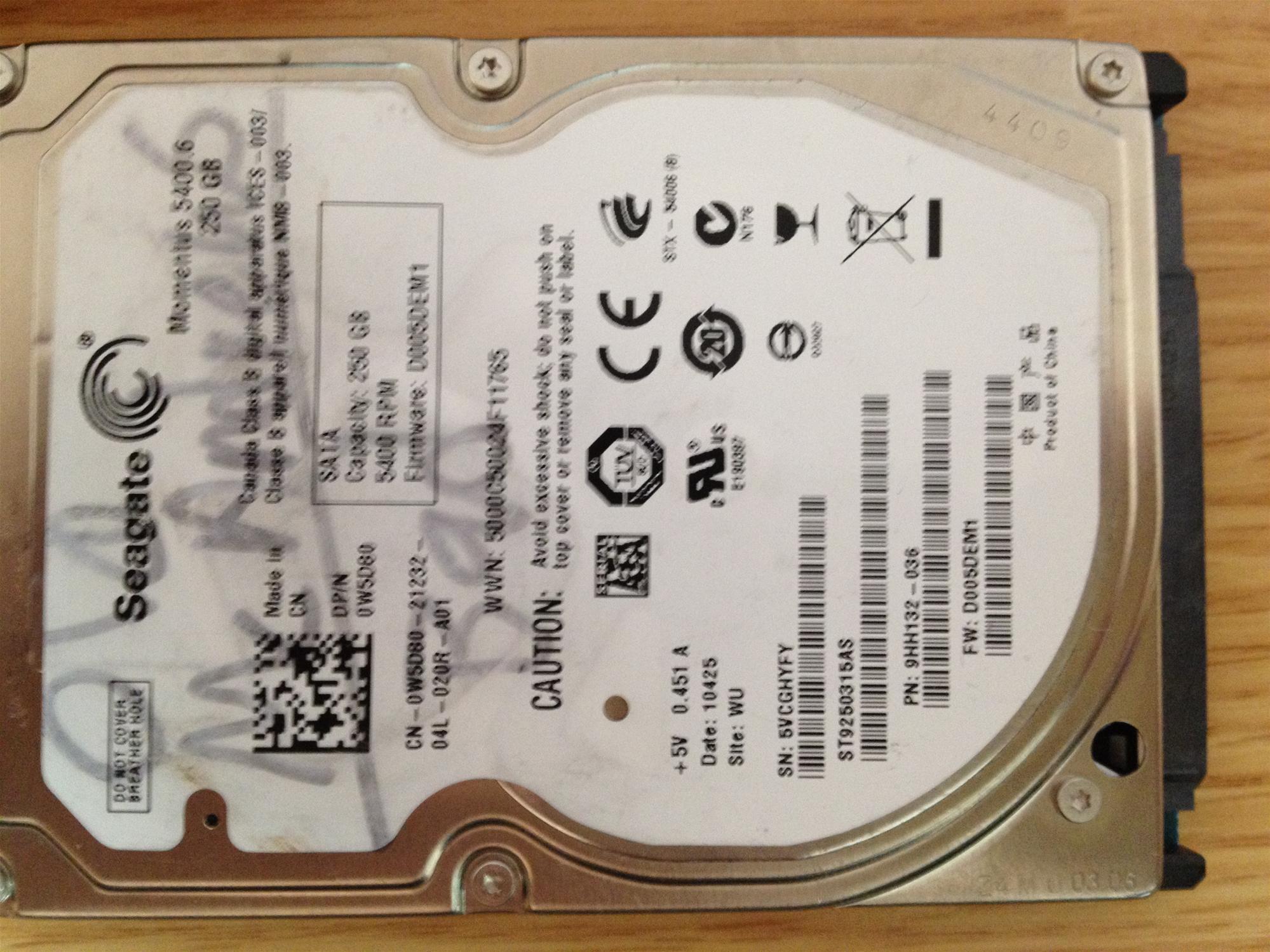 Back to Drive ST9250315AS - 27-Mar-2010 - 5VCGHYFY 1/2