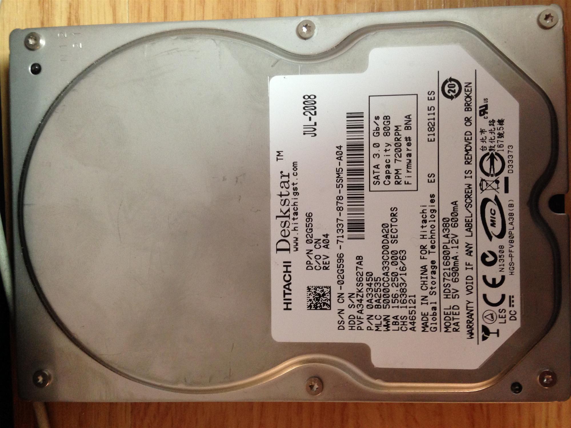 HDS721680PLA380 - 15-Jul-2008 - PVFA34ZKS627AB - photo-1