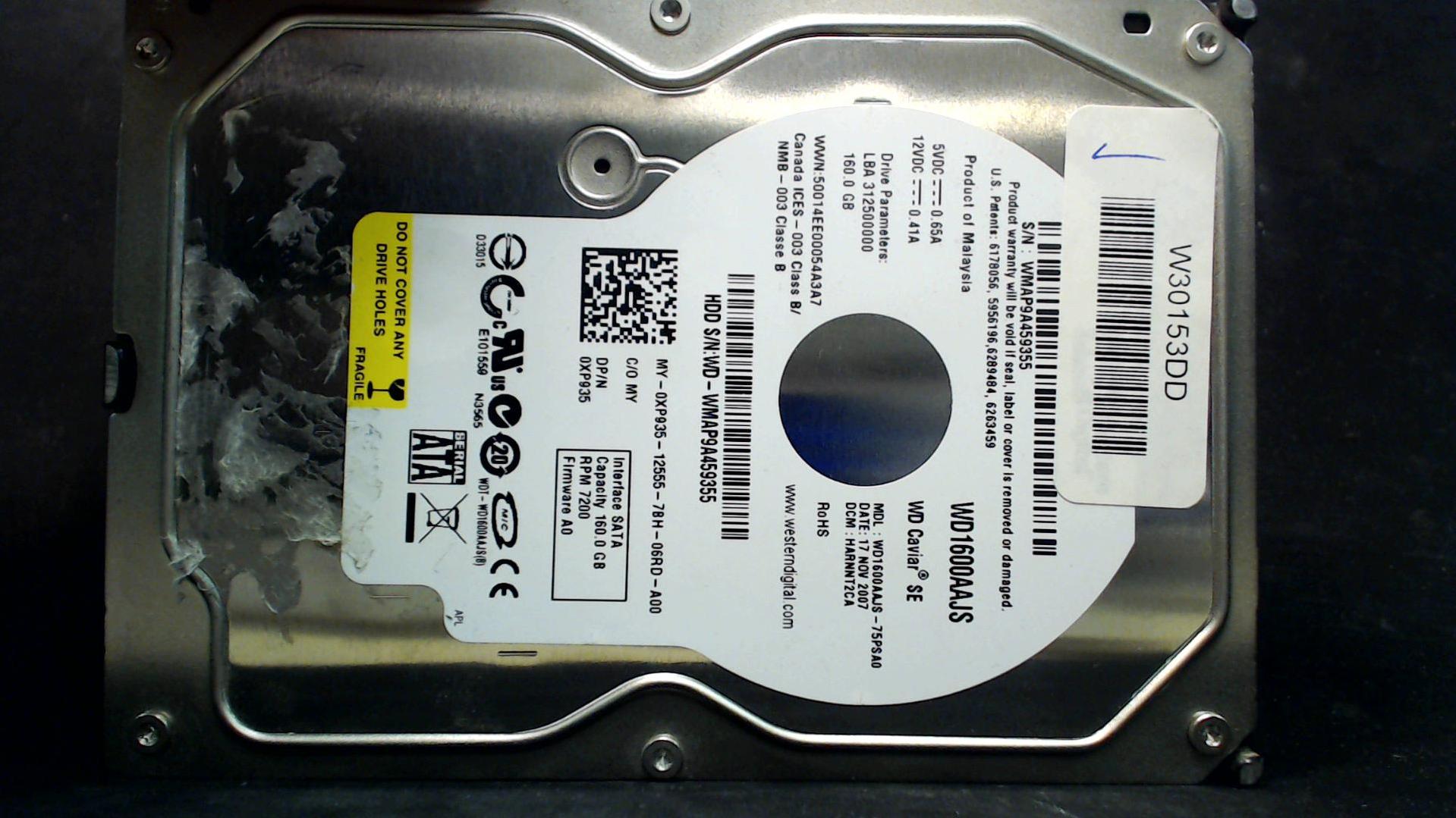 WD1600AAJS-75PSA0 - 17-Nov-2007 - WD-WMAP9A459355 - photo-1